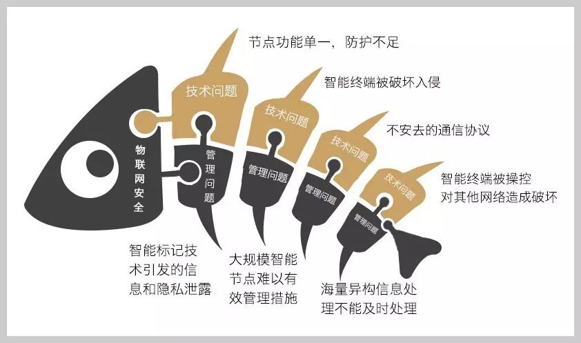技术方面,物联网安全多因为终端不安全和终端所在网络的不安全;管理问题,则是因为大批量节点难以有效处理和海量数据的搜集、存储和处理存在困难。