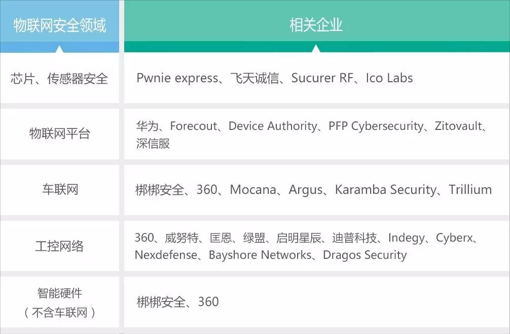 可以看到的是,物联网安全的进程与其所在行业的成熟度息息相关。随着智慧制造、市政环保、智慧城市等产业的进一步成熟,物联网安全企业将会进一步拓展。